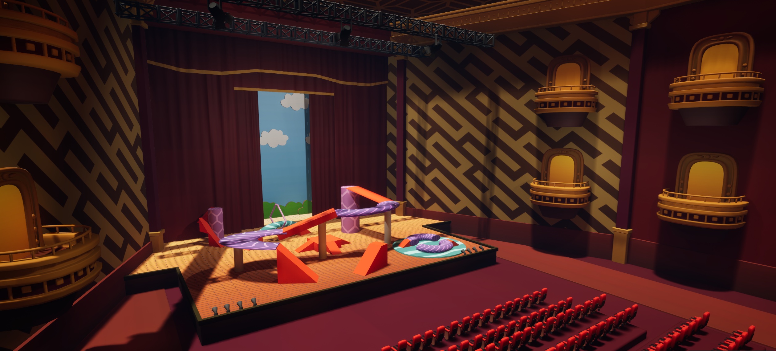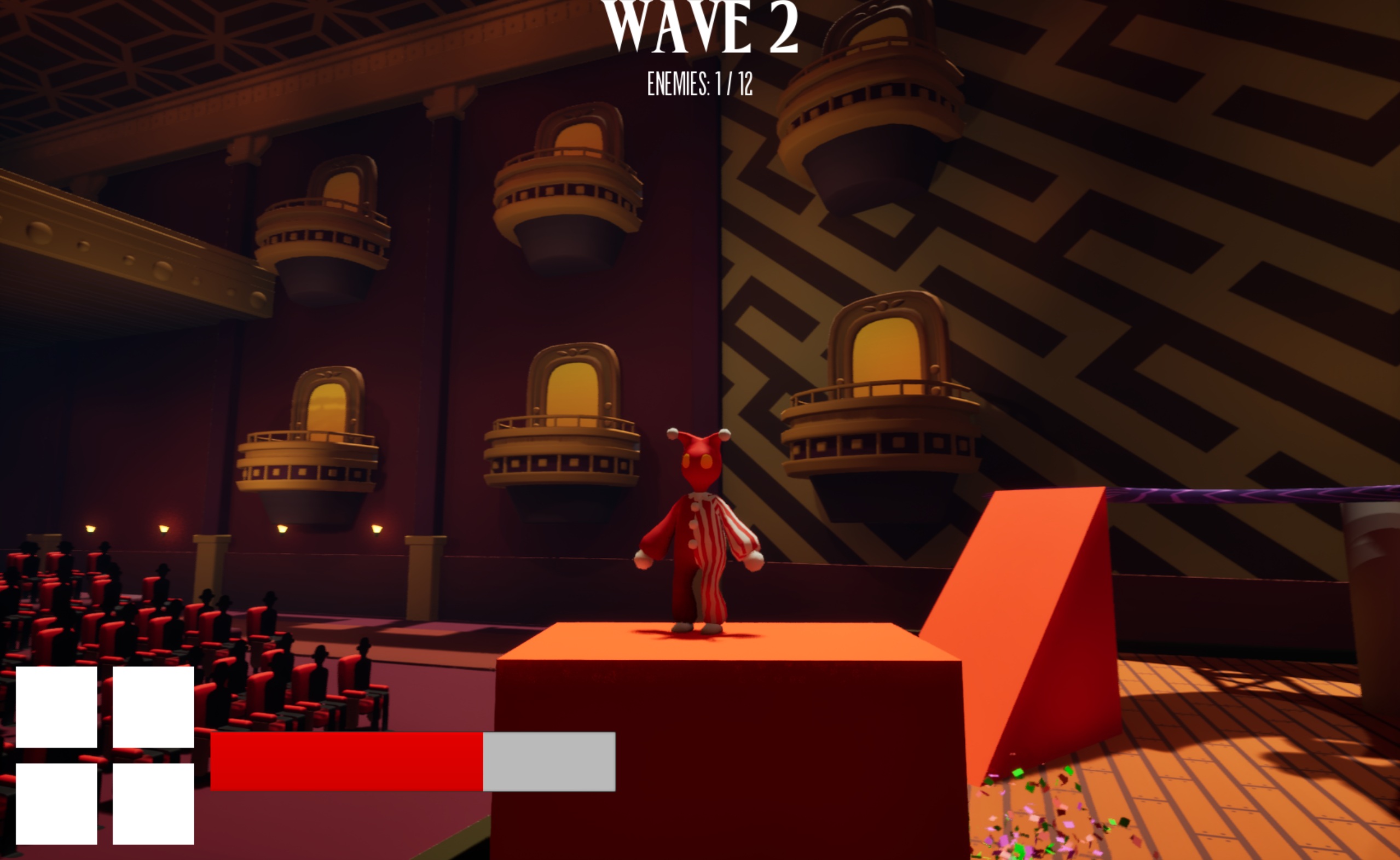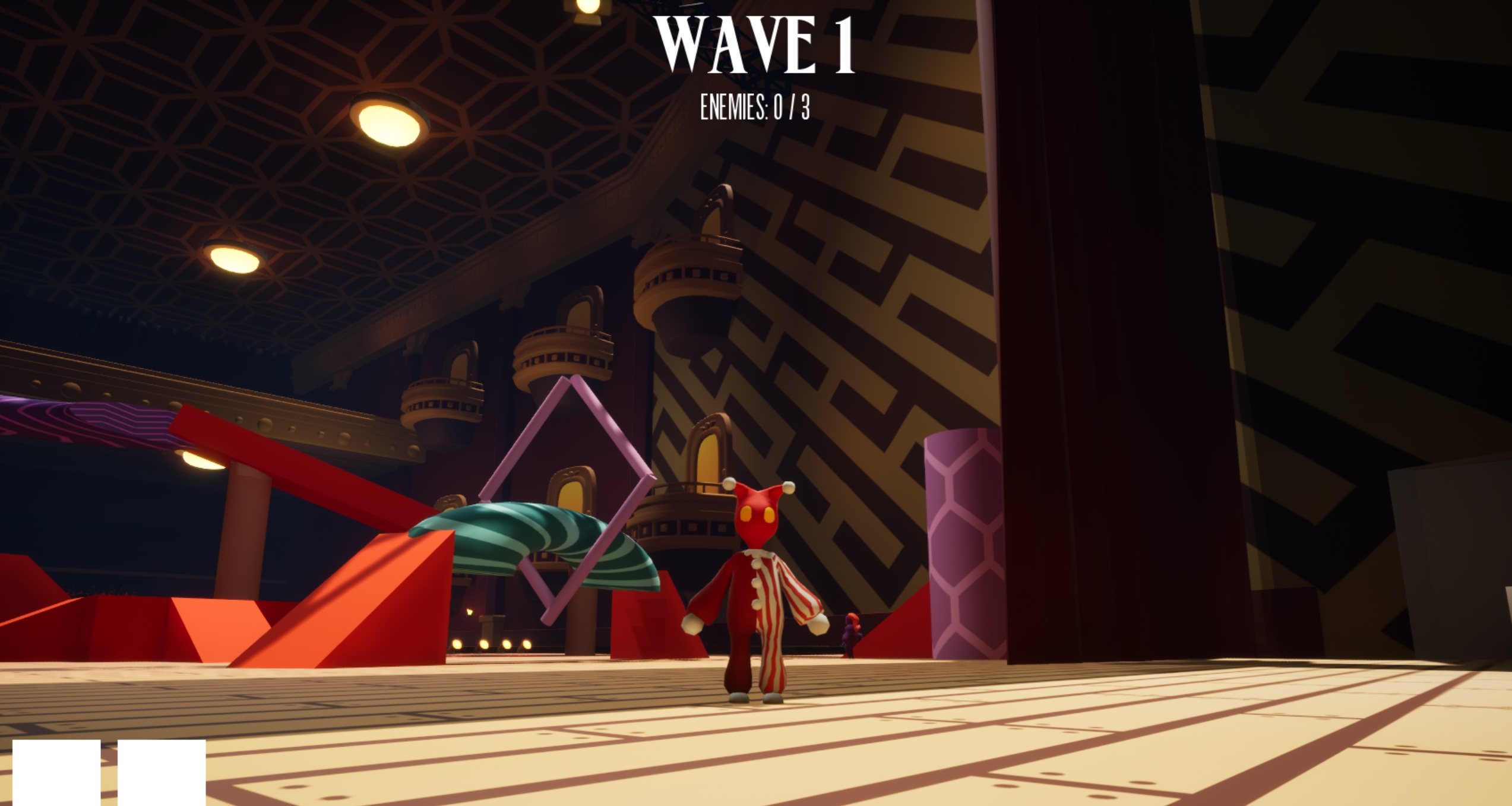 A wave-based beat em' up. Take the spotlight on the center stage and fight your way through acts of enemies, using masks to gain access to new abilities.
